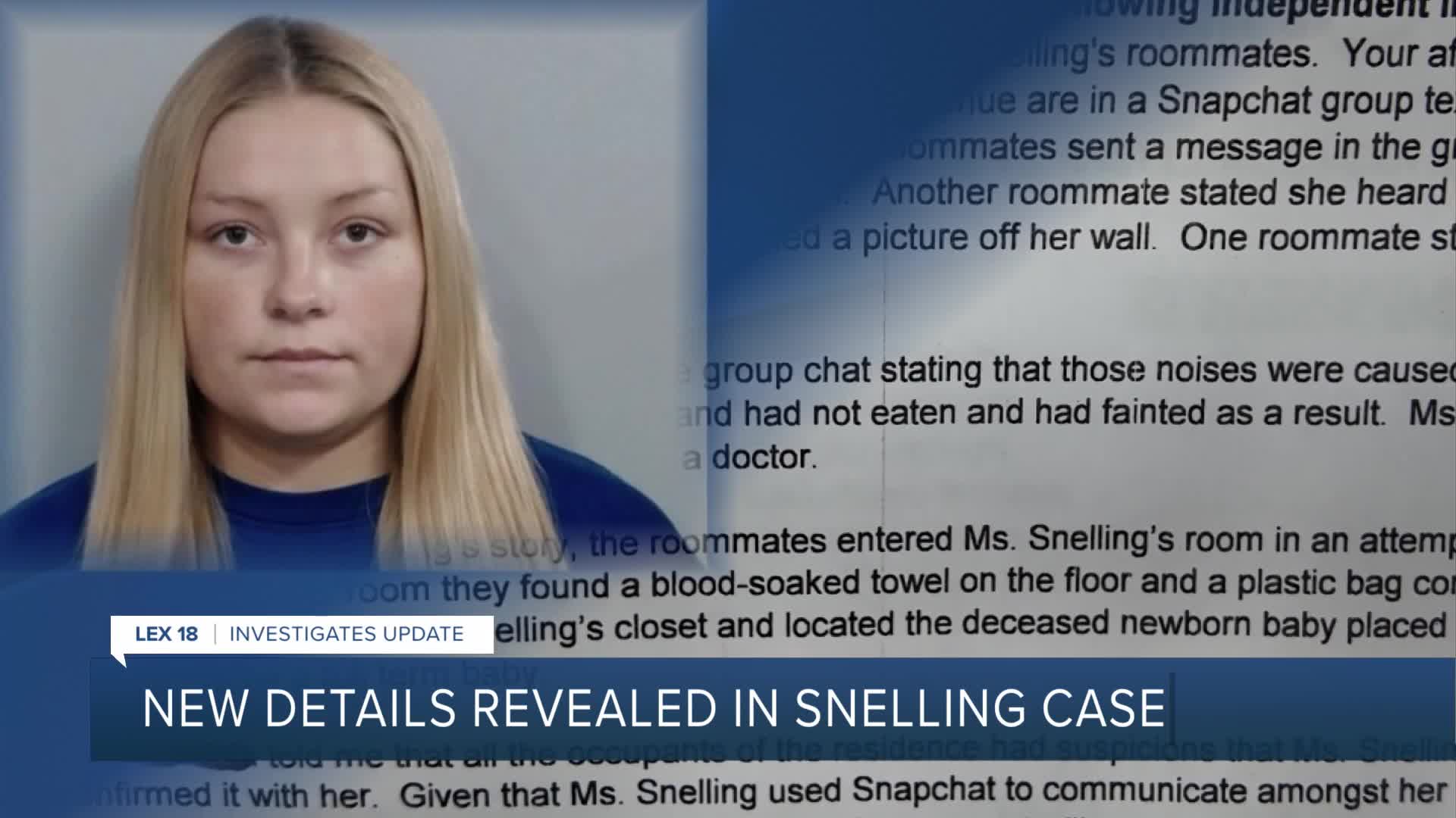 On Friday, LEX 18 obtained the 97-page case file in the Snelling investigation. Snelling was indicted by a Fayette County grand jury on first-degree manslaughter and other charges in connection with her newborn son's death.