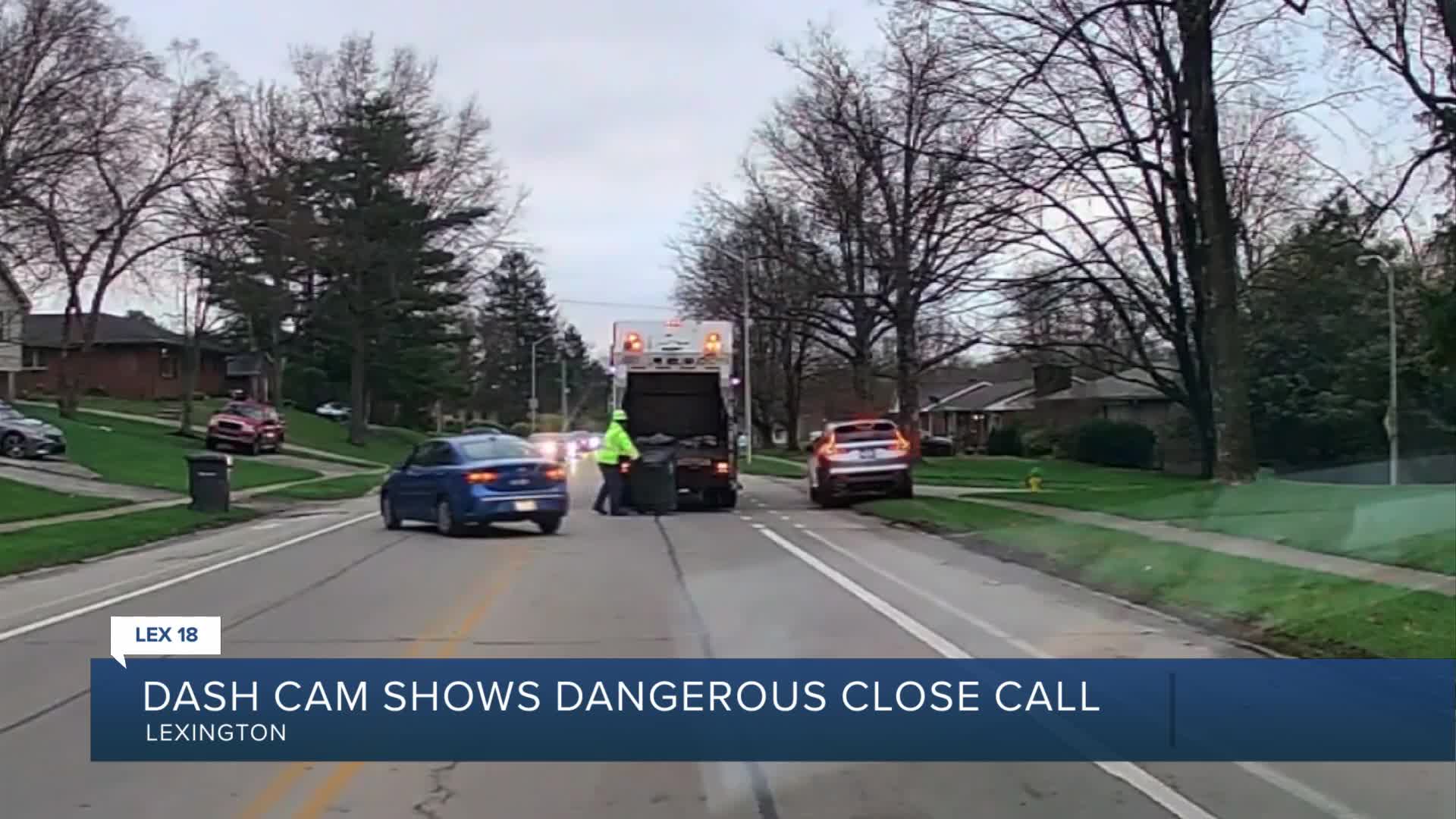 LEXINGTON, Ky. (LEX 18) — On Monday, a Lexington driver came dangerously close to hitting a waste management employee, according to dash camera footage from another motorist.