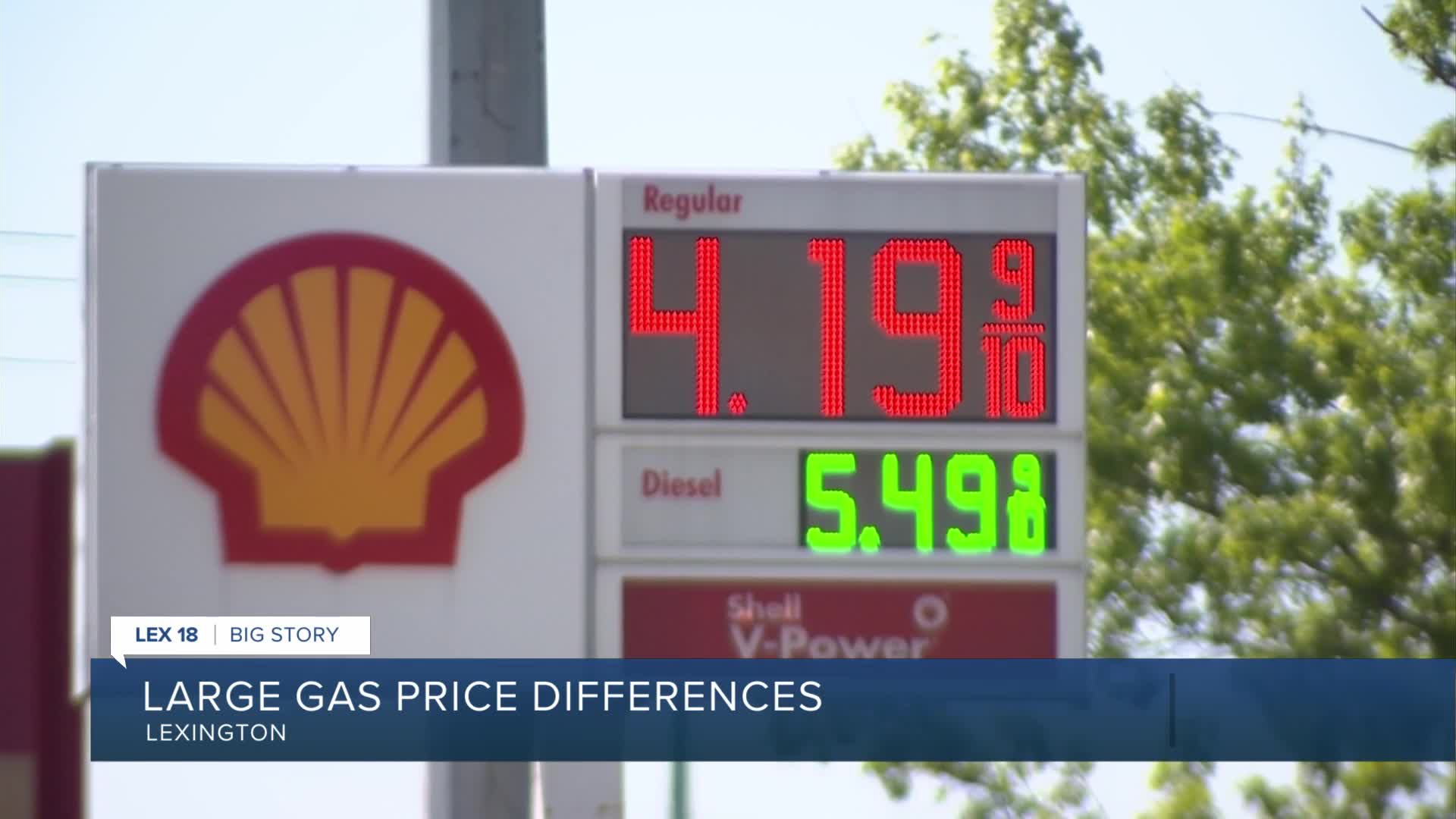 LEXINGTON, Ky. (LEX 18) — Gas prices in Lexington have been all over the place as of late, and the stations at the corner of Georgetown and Mercer Road is a perfect example.
