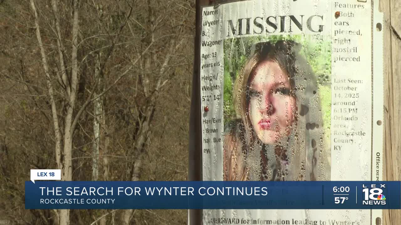 ROCKCASTLE COUNTY, Ky. (LEX 18) — The ongoing search for 13-year-old Wynter Wagoner, who disappeared from Rockcastle County, has stretched into its fourth week. Wagoner was last seen on October 14 around the small community of Orlando.