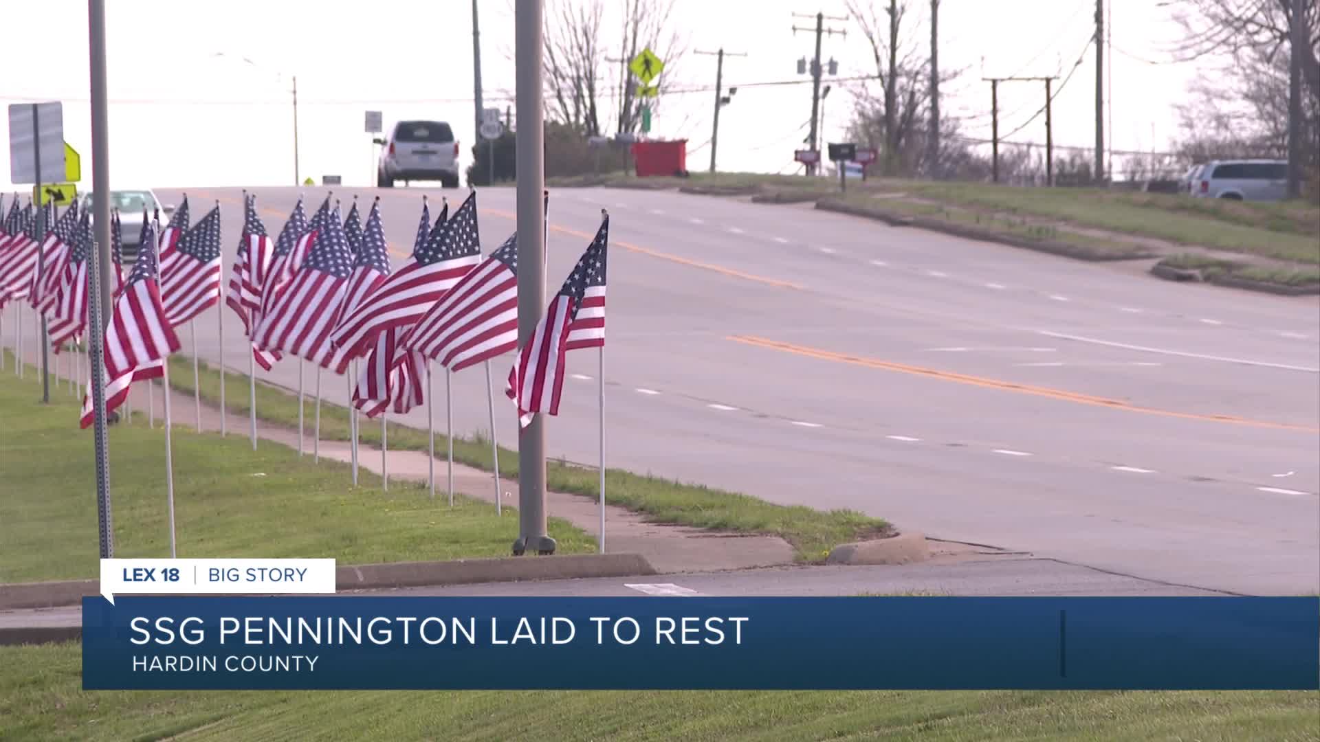 The Hardin County Kentucky Judge/Executive Keith Taul ordered that the American flag be flown at half-staff at all county government buildings, grounds, and facilities from 1:45 p.m. on Monday until sunset on Wednesday in tribute to Sgt. Pennington.