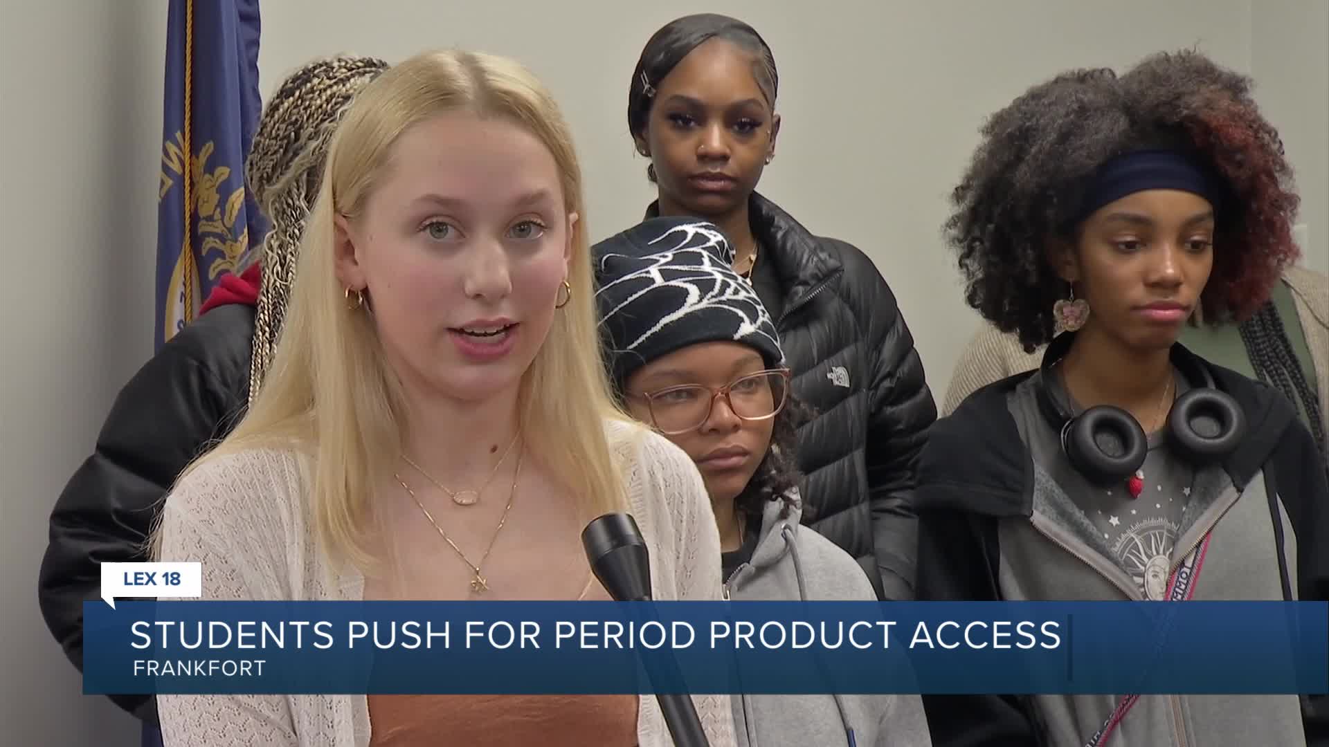 FRANKFORT, Ky. (LEX 18) — Students from across Kentucky traveled to Frankfort to advocate for free menstrual products in public schools, pushing for passage of House Bill 95 — legislation that would require schools serving grades 6 through 12 to provide the products at no cost to students.