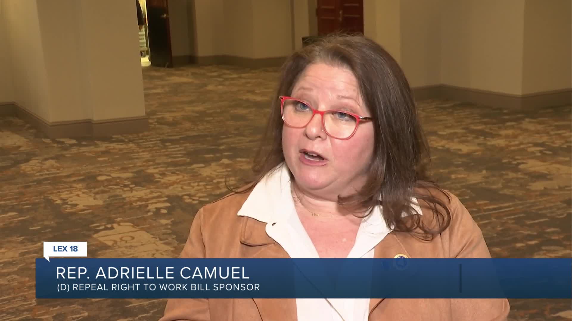 "It cut the legs out from under working families," Representative Adrielle Camuel said of Kentucky's right-to-work law.