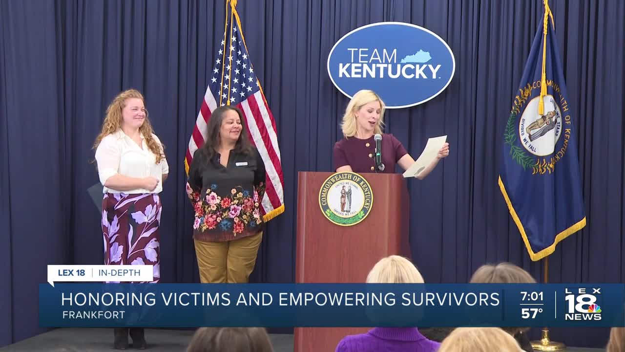 "To the survivors who are out there and might be listening, I want you to know that there is help," First Lady Beshear said.