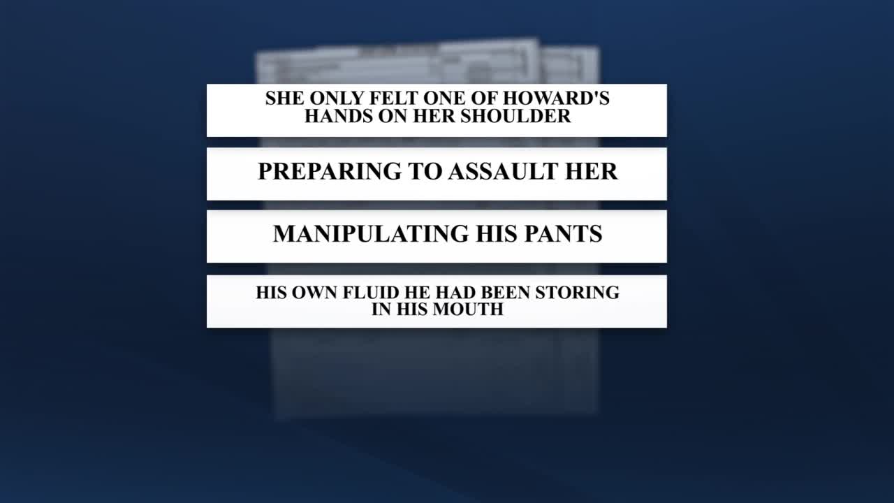 The victim told police she only felt one of Howard's hands on her shoulder and thought she heard what the citation describes as him "manipulating his pants." She began to feel uneasy and experienced what is known as "tonic immobility," a fear response that caused her body to freeze. The citation says she believed Howard might have been preparing to assault her.