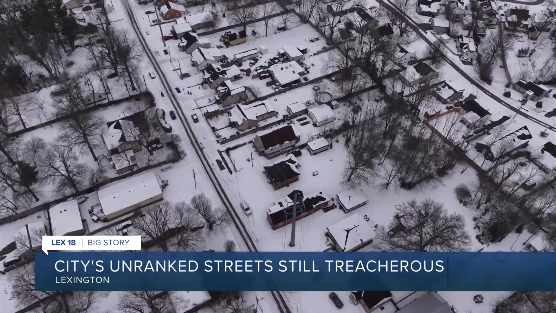 LEXINGTON, Ky. (LEX 18) — Lexington residents living on unranked streets have endured two weeks of treacherous, icy road conditions while waiting for city snow removal assistance that may never come. Those streets aren't on the city's so-called plow list.