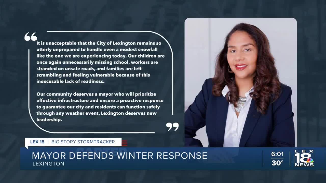 LEXINGTON, Ky. (LEX 18) — Lexington Mayor Linda Gorton is defending the city's response to a winter storm that left roads icy and dangerous Tuesday morning, causing widespread traffic disruptions and prompting criticism from a mayoral opponent.