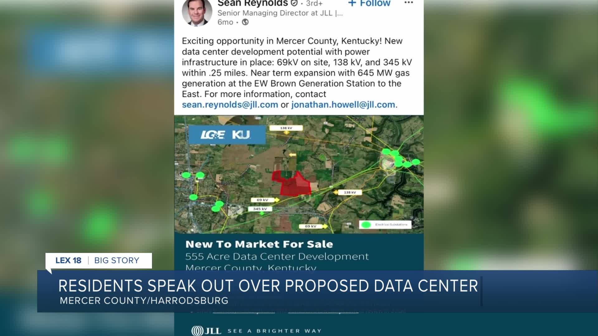 MERCER COUNTY, Ky. (LEX 18) — A grassroots opposition movement in Mercer County is gaining momentum as residents fight against a potential data center that they say could forever change their rural way of life.