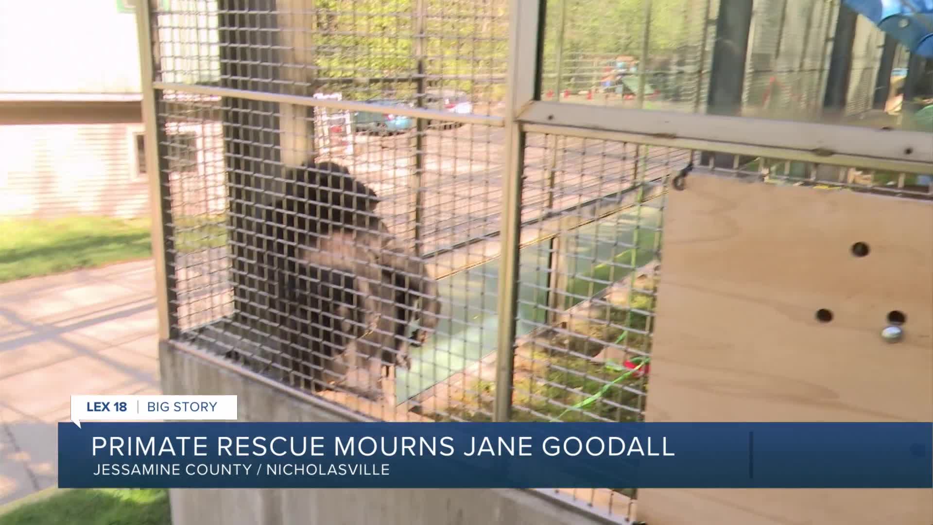 JESSAMINE COUNTY, Ky. (LEX 18) — At the Primate Rescue Center in Nicholasville, the people who run the nonprofit sanctuary say Jane Goodall made an impact in their world, and the human world, that will span beyond Goodall's lifetime.