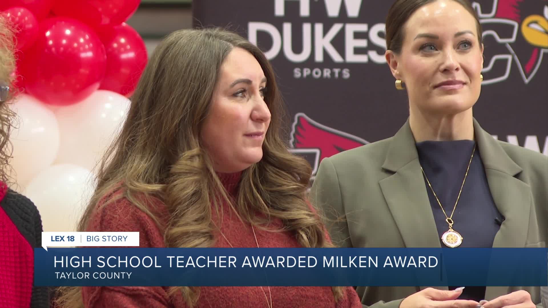 A Taylor County High School English teacher received the surprise of a lifetime Monday morning when she was awarded a prestigious $25,000 Milken Educator Award during a special assembly.
