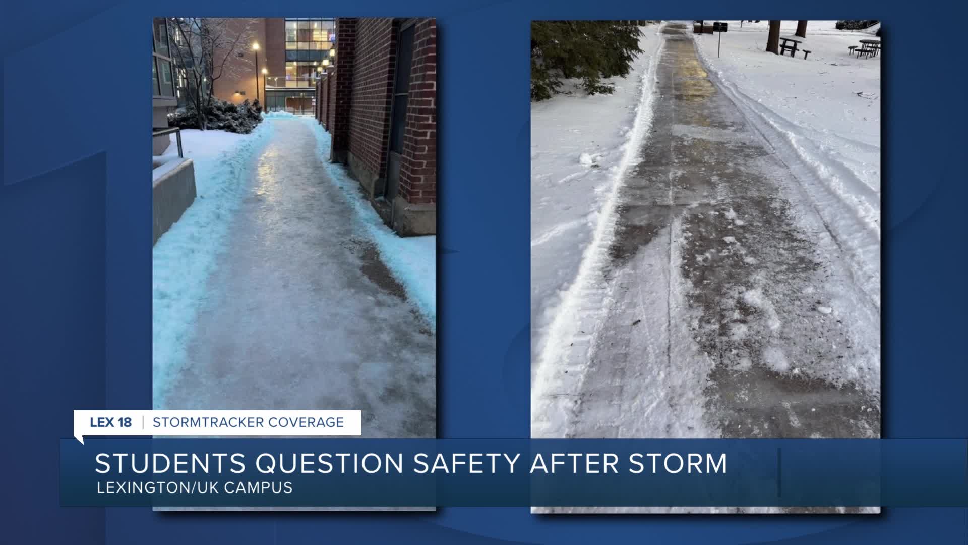 LEXINGTON, Ky. (LEX 18) — The University of Kentucky resumed full operations Thursday after a significant winter storm dumped snow and across Lexington five days ago, but some students and faculty are raising concerns about lingering icy conditions on campus.