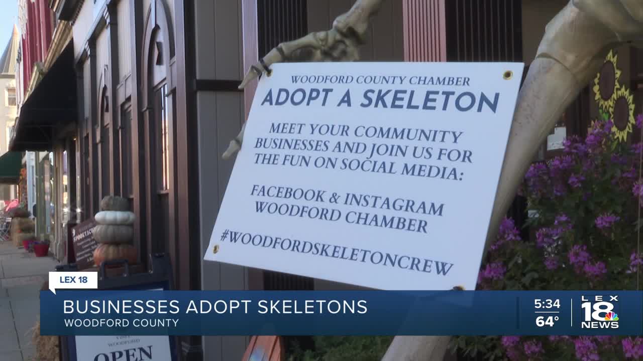 You can follow along at the Woodford Chamber of Commerce Facebook page, or by searching #WoodfordSkeletonCrew on the app to see businesses posting their skeletons.