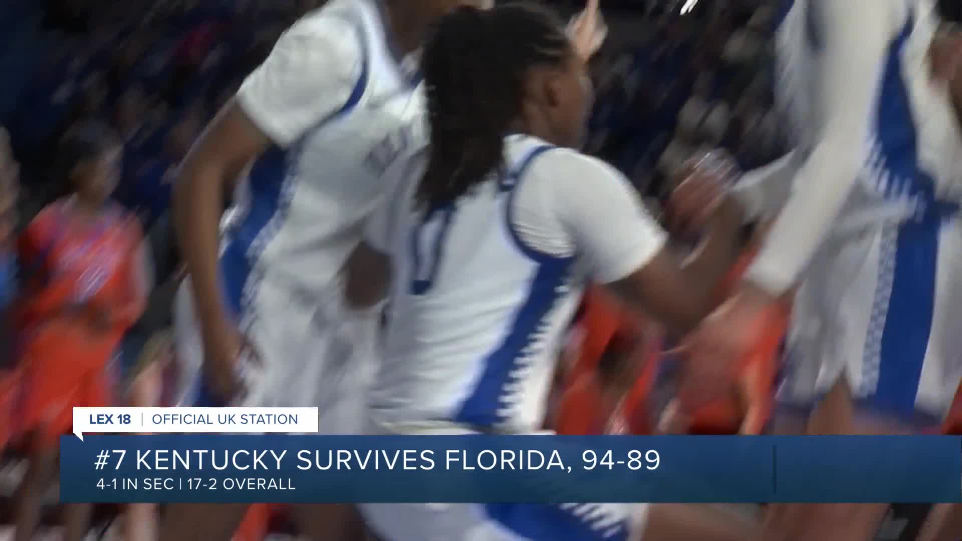 LEXINGTON, Ky. (LEX18) — No. 7 Kentucky leaned on a dominant night from Tonie Morgan to survive and advance over Florida, 94–89.