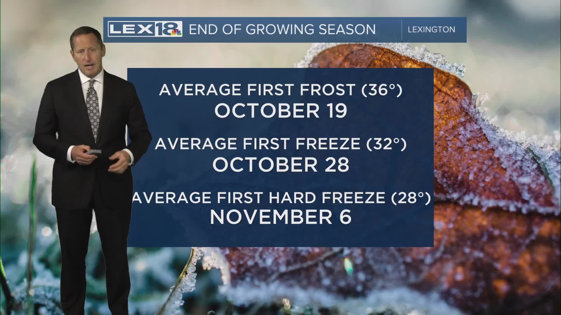 A dry cold front tracks through Tuesday, don't expect any rain beyond isolated showers over northern Kentucky. Do expect mostly to partly cloudy skies, a breezy (at times gusty, 20 to 30 mph) west wind and highs in the mid to upper 60s. The coolest air of the season arrives midweek with plenty of sunshine Wednesday, but highs only topping out around 60°. With clear skies overnight, patchy to widespread frost is looking more likely as lows dip to the mid to upper 30s Thursday and Friday morning.