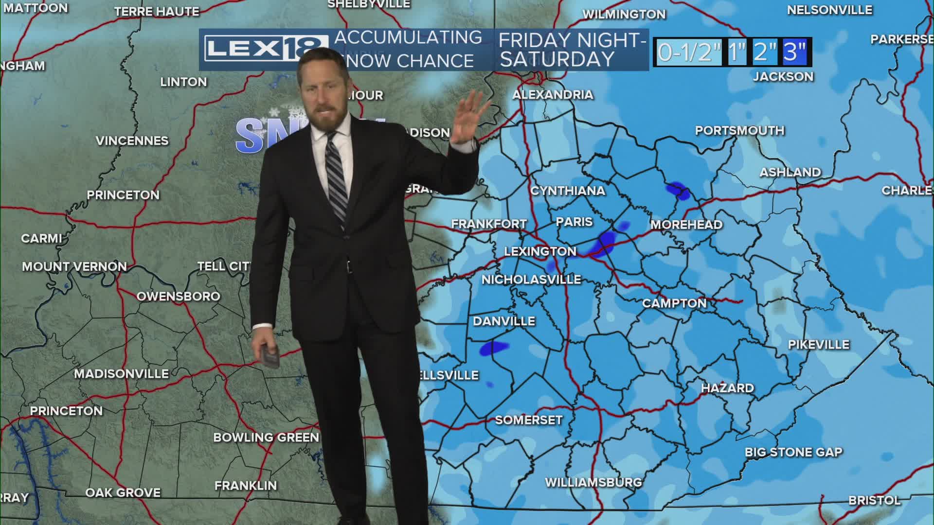 Friday morning will be cold with a few snow showers and flurries around. A surge of milder air will send highs into the 40s later in the day and after a midday dry stretch, we'll see rain developing this evening that will change over to a rain/snow mix and eventually straight snow overnight. Snow showers will persist Saturday, with light accumulation and slick road conditions along and east of I-75. We'll dry out later in the weekend and see the cold clamp down again with highs in the 20s and lows in the teens and single digits through MLK Day.