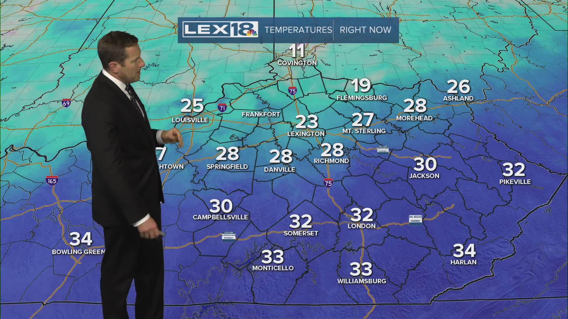 That overnight shot of light snow and mixed precipitation added insult to injury, a fresh coating of wintry precipitation on our existing slab of snow and ice from late January. We'll stay cloudy and cold Wednesday with isolated snow showers and flurries. Expect highs in the mid to upper 20s in the Bluegrass and closer to freezing southeast. A strong northeast wind will keep the wind chill in the single digits in the morning and teens later in the day. Roads will remain slushy to icy to slick and hazardous, but there is some good news. We'll see some sunshine Thursday and with highs in the 30s this weekend and 40s, potentially near 50° next week, we'll really start to eat away at all that lingering snow and ice.