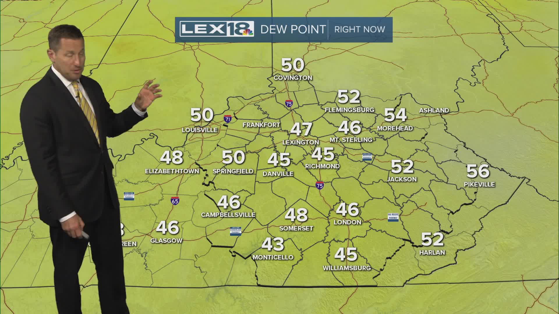 The spectacular fall weather we enjoyed over the weekend continues much of this week with mostly sunny skies, dry air and highs in the mid 70s Monday, Tuesday and Wednesday. A dry cold front will drop the high a few degrees Thursday but we're back in the mid 70s to start the weekend. Our next chance for rain fires up late in the weekend with showers and storms developing Saturday night into Sunday.