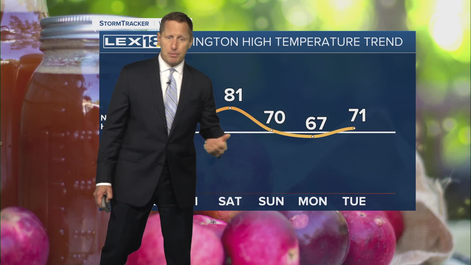 High pressure over the Great Lakes will keep a northeast wind flowing Thursday, keeping highs near normal, in the upper 60s to around 70 south. Friday will stay mostly sunny and end up a little warmer, in the low to mid 70s. A strong south/southwest wind sets up ahead of a late weekend cold front, sending highs soaring to the upper 70s, low 80s Saturday. Most of the rain will hold off until Saturday night into Sunday but watch for gusty wind and isolated showers toward the end of the UK-Texas game Saturday evening out at Kroger Field. Widespread showers and storms will develop overnight and continue Sunday as the cold front slides east. The main severe storm threat remains well to our west/southwest but watch for strong storms and heavy rain late in the weekend. Much cooler air follows for a few days next week.